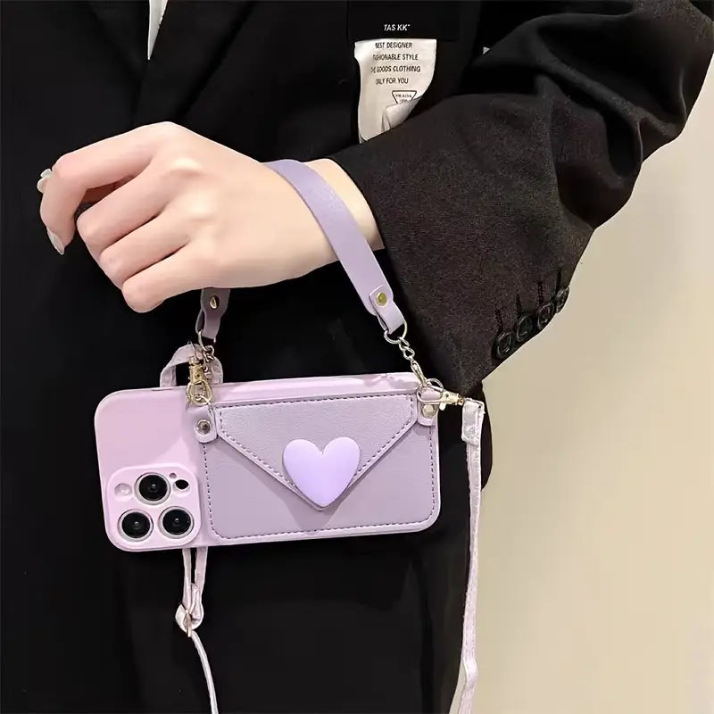 Card Holder Shell Cover Lanyard Cross Body Wallet Cell Phone Case